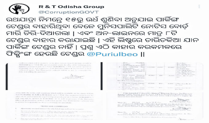 ରଥଯାତ୍ରା ପାଇଁ ପାର୍କିଂ ଟେଣ୍ଡରରେ ପାତରଅନ୍ତର