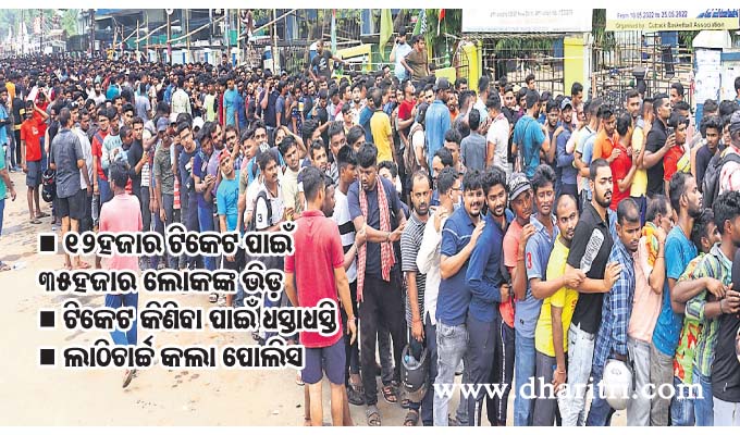 କଟକ ଅଫିସ, ୧୦ା୬: ବାରବାଟୀ ଷ୍ଟାଡିୟମରେ ଆସନ୍ତା ୧୨ ତାରିଖରେ ଖେଳାଯିବାକୁ ଥିବା ଭାରତ-ଦକ୍ଷିଣ ଆଫ୍ରିକା ଅନ୍ତର୍ଜାତୀୟ ଟି୨୦ମ୍ୟାଚ୍ ପାଇଁ ପ୍ରଥମ ଦିନରେ ଟିକେଟ ବିକ୍ରି ଶେଷ ହୋଇଛି। ଗୁରୁବାର ସକାଳ ୯ଟାରୁ କାଉଣ୍ଟରରେ ଟିକେଟ୍ ବିକ୍ରି ଆରମ୍ଭ ହୋଇଥିଲା।...