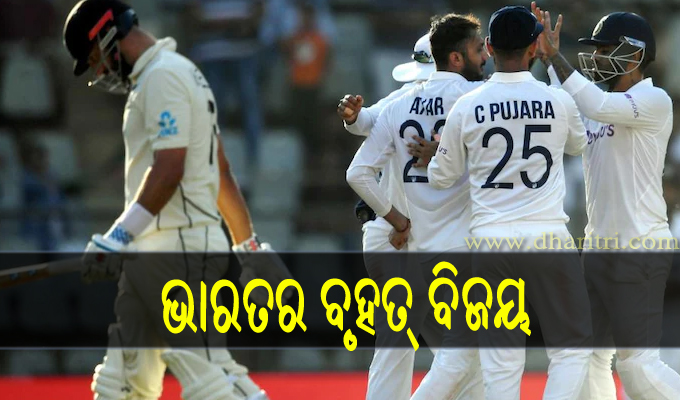 ମୁମ୍ବାଇ,୬।୧୨: ମୁମ୍ବାଇ ଟେଷ୍ଟରେ ନ୍ୟୁଜିଲାଣ୍ଡକୁ ୩୭୨ ରନରେ ପରାସ୍ତ କରିବା ପରେ ଭାରତ ମ୍ୟାଚ ଏବଂ ସିରିଜ ଜିତିଥିଲା। ଟେଷ୍ଟ କ୍ରିକେଟରେ ଏହା ଭାରତର ସବୁଠୁ ବଡ ବିଜୟ। ମ୍ୟାଚ ଜିତିବା ପାଇଁ ଟିମ ଇଣ୍ଡିଆ ନ୍ୟୁଜିଲାଣ୍ଡକୁ ୫୪୦ ରନ...