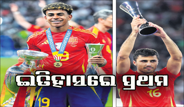 ବର୍ଲିନ୍,୧୬ା୭: ଜର୍ମାନୀରେ ଅନୁଷ୍ଠିତ ୟୁରୋ କପ୍ ୨୦୨୪ ଶେଷ ହୋଇଛି। ଫାଇନାଲରେ ଇଂଲଣ୍ଡକୁ ୨-୧ ଗୋଲରେ ହରାଇ ସ୍ପେନ୍ ଚାମ୍ପିୟନ ହୋଇଛି। ତେବେ ଟୁର୍ନାମେଣ୍ଟ ଇତିହାସରେ ପ୍ରଥମ ଥର ପାଇଁ ୬ ଜଣ ଖେଳାଳି ମିଳିତ ଭାବରେ ଗୋଲ୍ଡେନ୍ ବଲ...
