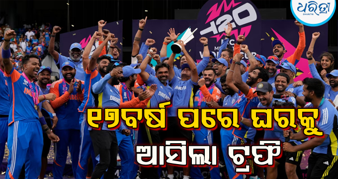 ନୂଆଦିଲ୍ଲୀ,୩।୭: ଭାରତୀୟ ଦଳ ଟି-୨୦ ବିଶ୍ୱକପ ଟାଇଟଲ ଜିତିଛି। ଫାଇନାଲରେ ଦକ୍ଷିଣ ଆଫ୍ରିକାକୁ ପରାସ୍ତ କରି ୧୭ ବର୍ଷ ପରେ ଟିମ ଇଣ୍ଡିଆ ଟାଇଟଲ ହାସଲ କରିଛି। ଚାମ୍ପିୟନ୍ ହେବାପେରେ ଟିମ ଇଣ୍ଡିଆ ଜୁଲାଇ ୪ରେ ଭାରତରେ ପହଞ୍ଚିବ। ଟିମ...