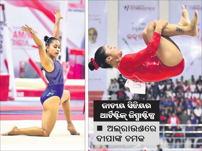 ଭୁବନେଶ୍ୱର, ୪।୧ (ତପନ ସ୍ବାଇଁ): କଳିଙ୍ଗ ଷ୍ଟାଡିୟମରେ ଚାଲିଥିବା ଜାତୀୟ ସିନିୟର ଆର୍ଟିଷ୍ଟିକ୍ ଜିମ୍ନାଷ୍ଟିକ୍ସ ଚାମ୍ପିୟନଶିପ୍ର ଦ୍ୱିତୀୟ ଦିବସରେ ଅନୁଷ୍ଠିତ ମହିଳା ବିଭାଗ ପ୍ରତିଯୋଗିତାର ଅଲ୍ ରାଉଣ୍ଡ ବିଭାଗରେ ଚମକ ଦେଖାଇଛନ୍ତି ଅଲିମ୍ପିଆନ ଦୀପା କର୍ମକାର। ସେ ୪୯.୫୫ ପଏଣ୍ଟ...