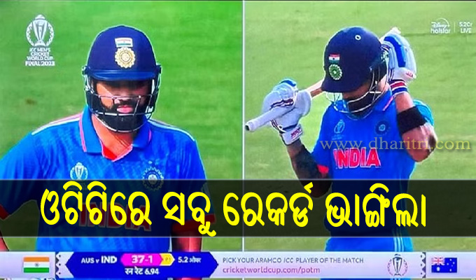 ଅହମ୍ମଦାବାଦ୍,୧୯।୧୧: ଆଜି ଭାରତ ଏବଂ ଅଷ୍ଟ୍ରେଲିଆ ମଧ୍ୟରେ ଫାଇନାଲ ମୁକାବିଲା ପରେନ୍ଦ୍ର ମୋଦି ଷ୍ଟାଡିୟମରେ ଖେଳାଯାଉଛି। ଏହି ମ୍ୟାଚ ଉପରେ ପୁରା ଦୁନିଆର ଆଖି ରହିଛି। ଓଟିଟିରେ ୪.୪ କୋଟି ଲାଇଭ ୟୁଜର୍ସଙ୍କ ରେକର୍ଡ ଥିଲା, କିନ୍ତୁ ଏହି ମ୍ୟାଚରେ...