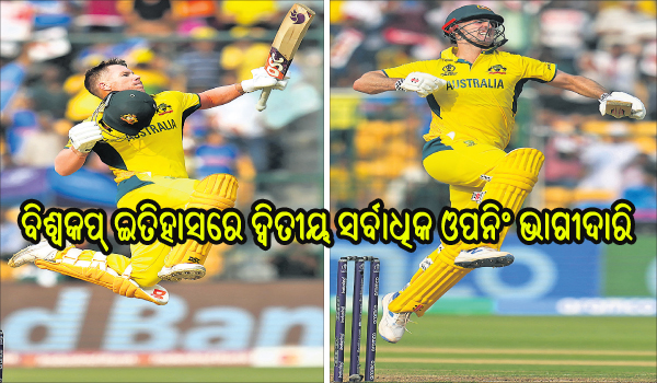 ବେଙ୍ଗାଲୁରୁ, ୨୧।୧୦:ଚଳିତ ଦିନିକିଆ କ୍ରିକେଟ ବିଶ୍ୱକପ୍ର ଶୁକ୍ରବାର ଅନୁଷ୍ଠିତ ମ୍ୟାଚରେ ପାକିସ୍ତାନ ବିପକ୍ଷରେ ଶତକ ହାସଲ କରିଛନ୍ତି ଅଷ୍ଟ୍ରେଲିଆର ମିଚେଲ ମାର୍ଶ ଓ ଡେଭିଡ ଓ୍ବାର୍ନର। ଦୁଇଜଣଙ୍କ ଶତକ ଏବଂ ଦ୍ୱିଶତକୀୟ ଭାଗୀଦାରି ସହ ଅନେକ ରେକର୍ଡ ମଧ୍ୟ ସୃଷ୍ଟି...