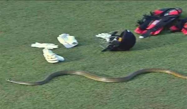 ମ୍ୟାଚ ସମୟରେ ପଡ଼ିଆକୁ ପଶିଲା ସାପ, ଭିଡିଓ ଭାଇରାଲ