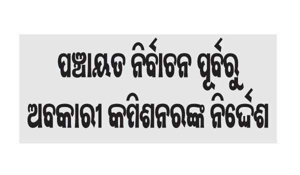 ଭୁବନେଶ୍ୱର, ୧୨ା୨(ବ୍ୟୁରୋ): ପଞ୍ଚାୟତ ନିର୍ବାଚନ ସମୟରେ ବେଆଇନ ନିଶା କାରବାର ରୋକିବା ପାଇଁ ରାଜ୍ୟର ସୀମାନ୍ତ ଅଞ୍ଚଳରେ ନଜର ରଖିବାକୁ ରାଜ୍ୟ ଅବକାରୀ କମିଶନର ଆଶିଷ କୁମାର…