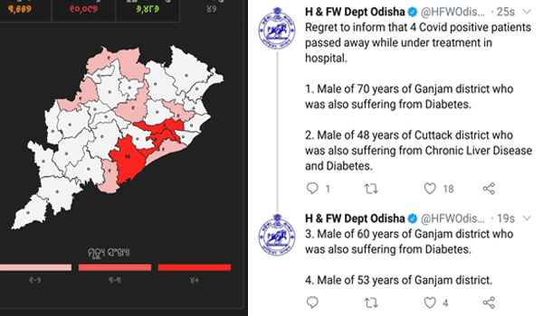 ଭୁବନେଶ୍ୱର, ୭।୭(ବ୍ୟୁରୋ): ରାଜ୍ୟରେ ମଙ୍ଗଳବାର କରୋନାରେ ଆଉ ୪ ଜଣଙ୍କ ମୃତ୍ୟୁ ଘଟିଛି। ଫଳରେ ଏହାକୁ ମିଶାଇ ରାଜ୍ୟରେ କରୋନା ମୃତ୍ୟୁ ସଂଖ୍ୟା ୪୨କୁ ବୃଦ୍ଧି ପାଇଛି।…