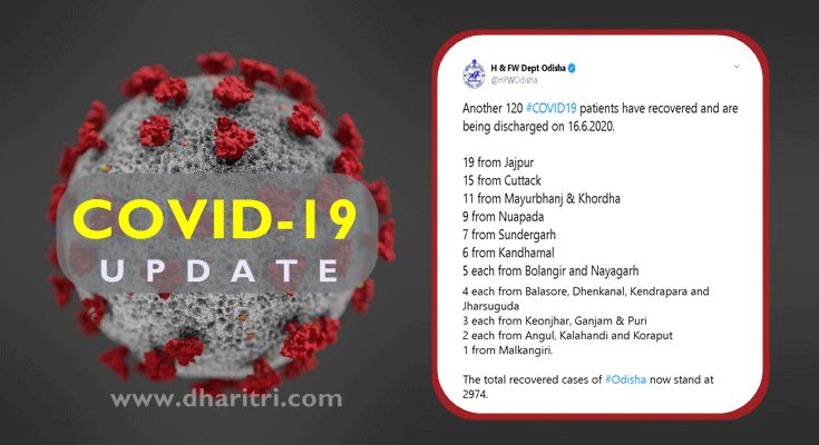 ଭୁବନେଶ୍ୱର,୧୬।୬(ବ୍ୟୁରୋ): ରାଜ୍ୟରେ ସୁସ୍ଥ ହୋଇଛନ୍ତି ଆଉ ୧୨୦ କରୋନା ଆକ୍ରାନ୍ତ। ସେମାନଙ୍କ ମଧ୍ୟରେ ଯାଜପୁରର ୧୯, କଟକର ୧୫, ମୟୂରଭଞ୍ଜର ୧୧, ଖୋର୍ଦ୍ଧାର ୧୧, ନୂଆପଡ଼ାର ୯,…