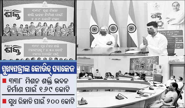 ଭୁବନେଶ୍ୱର,୧୭ା୭(ବ୍ୟୁରୋ): ମୁଖ୍ୟମନ୍ତ୍ରୀ ନବୀନ ପଟ୍ଟନାୟକ ଶୁକ୍ରବାର ରାଜ୍ୟ ମିଶନ ଶକ୍ତିର ମହିଳାମାନଙ୍କ ପାଇଁ ୪୫୩.୫୦ କୋଟି ଟଙ୍କାର କୋଭିଡ୍ ସହାୟତା ଘୋଷଣା କରିଛନ୍ତି। ତଦନୁଯାୟୀ ରାଜ୍ୟର ୩୩୮ ବ୍ଲକସ୍ତରୀୟ ମିଶନ ଶକ୍ତି ଭବନ ନିର୍ମାଣ ପାଇଁ ୫୦ ଲକ୍ଷ ଟଙ୍କା...