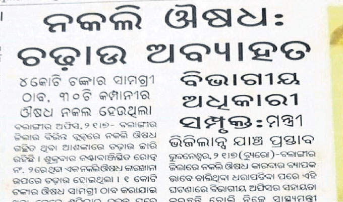 ଓଡ଼ିଶାରେ ନକଲି ଔଷଧ କାରବାର ପୁରୁଣା