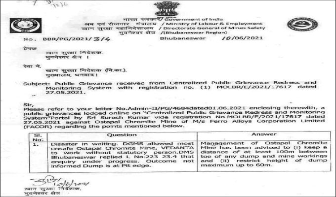 ଯାଜପୁର ଅଫିସ,୧୫।୬: ବେଦାନ୍ତ ଦ୍ୱାରା କାର୍ଯ୍ୟକାରୀ ହେଉଥିବା ଯାଜପୁର ଜିଲା ସୁକିନ୍ଦା ବ୍ଲକର ଓସ୍ତପାଳ କ୍ରୋମାଇଟ ଖଣି ଅସୁରକ୍ଷିତ ହୋଇପଡ଼ିଛି। କାରଣ ଖଣି ଗର୍ତ୍ତଠାରୁ ମାତ୍ର ୨୦ ମିଟର ଦୂରରେ ଥିବା ୭୮ ମିଟର ଉଚ୍ଚତାର ଏକ ଡମ୍ପ ମୃତ୍ୟୁର...