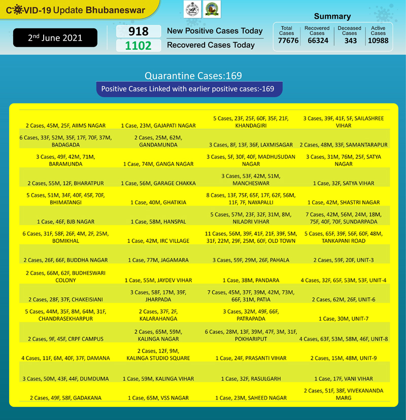ଭୁବନେଶ୍ବର,୨।୬: ବହୁ ଚେଷ୍ଟା ସତ୍ତ୍ୱେ ରାଜଧାନୀରେ ସ୍ଥାନୀୟ ଆକ୍ରାନ୍ତଙ୍କ ସଂଖ୍ୟା ଥମିବାର ନା ନେଉନାହିଁ। ଗତ ୨୪ଘଣ୍ଟା ମଧ୍ୟରେ ଭୁବନେଶ୍ୱରେ ୯୧୮ କରୋନା ପଜିଟିଭ୍ ଚିହ୍ନଟ ହୋଇଛନ୍ତି। ଆକ୍ରାନ୍ତଙ୍କ ମଧ୍ୟରୁ କ୍ବାରେଣ୍ଟାଇନରୁ ୧୬୯ ଚିହ୍ନଟ ହୋଇଥିବା ବେଳେ ସ୍ଥାନୀୟ ଅଞ୍ଚଳରୁ...