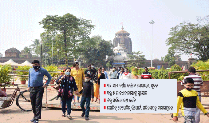 ପୁରୀ ଅଫିସ,୨୭ା୧୨: ଶ୍ରୀମନ୍ଦିର ଖୋଲିବାର ୩ଦିନ ପରେ ଶନିବାର ସ୍ଥାନୀୟ ଲୋକେ ଦର୍ଶନ କରିବାର ସୁଯୋଗ ପାଇଛନ୍ତି। ପ୍ରଥମ ଦିନରେ ୩ଟି ପର୍ଯ୍ୟାୟରେ ପୁରୀବାସୀ ଶ୍ରୀଜଗନ୍ନାଥଙ୍କ ଦର୍ଶନ କରିଛନ୍ତି। ସକାଳ ବେଳା ୬ ଓ ୯ ନମ୍ବର, ଅପରାହ୍ନରେ ୧୨...