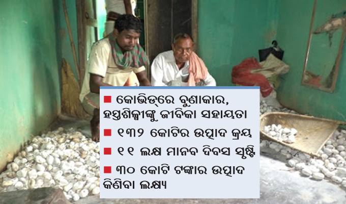 ଭୁବନେଶ୍ୱର,୪।୧୨(ବ୍ୟୁରୋ): କୋଭିଡ୍-୧୯ ସତ୍ତ୍ୱେ ରାଜ୍ୟ ସରକାର ବୁଣାକାର, ହସ୍ତଶିଳ୍ପୀ ଏବଂ ଚିତ୍ରକରମାନଙ୍କ ପାଇଁ ୧୧ ଲକ୍ଷ ମାନବ ଦିବସ ସୃଷ୍ଟି କରିପାରିଛନ୍ତି। ବୁଣାକାର, ହସ୍ତଶିଳ୍ପୀ ଓ ଚିତ୍ରକରମାନଙ୍କ ଉତ୍ପାଦିତ ୧୩୨.୨୯ କୋଟି ଟଙ୍କାର ସାମଗ୍ରୀ କ୍ରୟ କରାଯାଇଛି। ଗୁରୁବାର ମୁଖ୍ୟ...