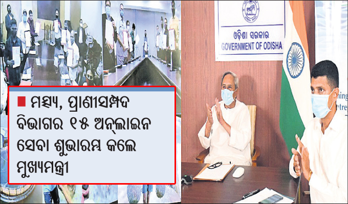 ଭୁବନେଶ୍ୱର,୪।୧୨(ବ୍ୟୁରୋ): ମୁଖ୍ୟମନ୍ତ୍ରୀ ନବୀନ ପଟ୍ଟନାୟକ ଗୁରୁବାର ଭିଡିଓ କନ୍ଫରେନ୍ସ ଜରିଆରେ ମତ୍ସ୍ୟ ଓ ପ୍ରାଣୀସମ୍ପଦ ବିକାଶ ବିଭାଗର ୧୫ ଅନ୍ଲାଇନ ସେବା ଶୁଭାରମ୍ଭ କରିଛନ୍ତି। ଏଥିସହିତ ମୁଖ୍ୟମନ୍ତ୍ରୀଙ୍କ ଉପସ୍ଥିତିରେ ହୀରାକୁଦ ଜଳଭଣ୍ଡାର ମଧ୍ୟରେ ପଞ୍ଜୁରି (କେଜ୍ କଲ୍ଚର) ମାଛ ଚାଷ...