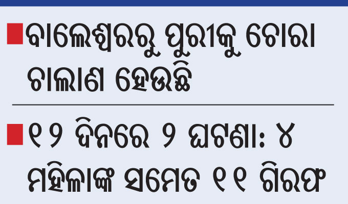 ପୁରୀ ଅଫିସ, ୧୧। ୧୦: ପୁରୀ ସହରରେ ବେଆଇନ ନିଶା କାରବାର ବୃଦ୍ଧି ପାଇବାରେ ଲାଗିଛି। ବିଶେଷକରି ଗତ କିଛିଦିନ ହେବ ବ୍ରାଉନସୁଗାର କାରବାର ବଢିଛି। ବାହାରୁ ଚୋରାରେ ବ୍ରାଉନସୁଗାର ଆସୁଥିବାବେଳେ ଏଠାରେ ଏହି କାରବାର ଅପରେଟ୍ କରୁଛନ୍ତି ମହିଳା...