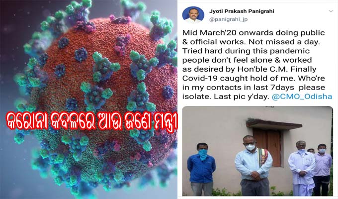 ଭୁବନେଶ୍ୱର,୭ା୯(ବ୍ୟୁରୋ): ପର୍ଯ୍ୟଟନ ମନ୍ତ୍ରୀ ଜ୍ୟୋତିପ୍ରକାଶ ପାଣିଗ୍ରାହୀ କରୋନା ଆକ୍ରାନ୍ତ ହୋଇଛନ୍ତି। ମନ୍ତ୍ରୀ ନିଜେ ଟୁଇଟ୍ କରି ସୋମବାର ଏ ସମ୍ପର୍କରେ ସୂଚନା ଦେଇଛନ୍ତି। ସେ କହିଛନ୍ତି, ମାର୍ଚ୍ଚ ୨୦ରୁ ନିରନ୍ତର ଭାବେ କାର୍ଯ୍ୟ କରିଆସୁଥିଲି। ଏହି ମହାମାରୀ ସମୟରେ ଲୋକମାନେ...