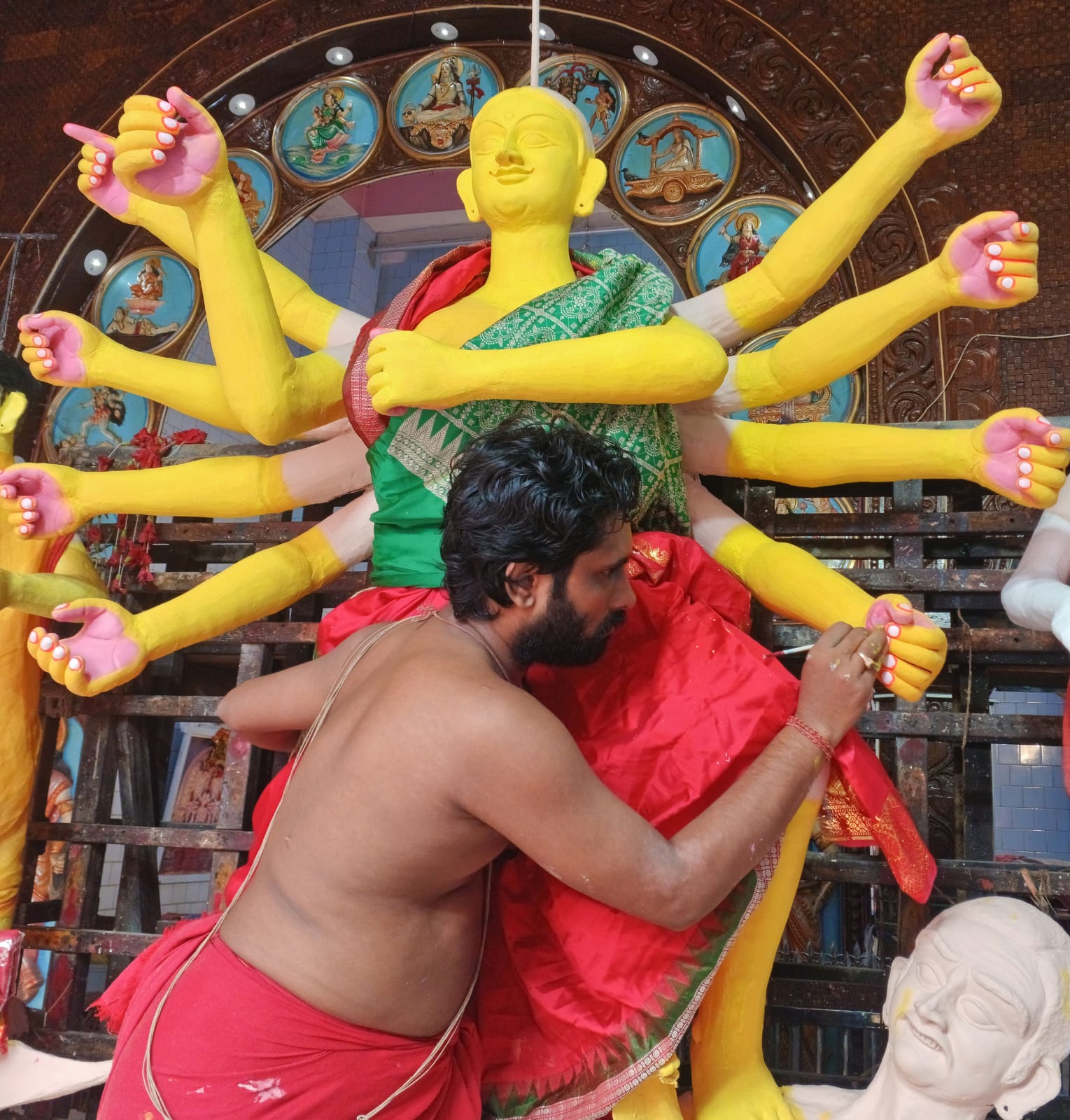 କଟକ ବିନୋଦ ବିହାରୀ ବାଲୁବଜାର ପୂଜା ମଣ୍ଡପରେ ମା ଦୁର୍ଗାଙ୍କ ମୃଣ୍ମୟୀ ପ୍ରତିମାଙ୍କୁ ରଙ୍ଗ ତୁଲୀରେ ରୂପରେଖ ଦିଆଯାଉଛି କଟକର ବିଭିର୍ନ ପୀଠରେ…