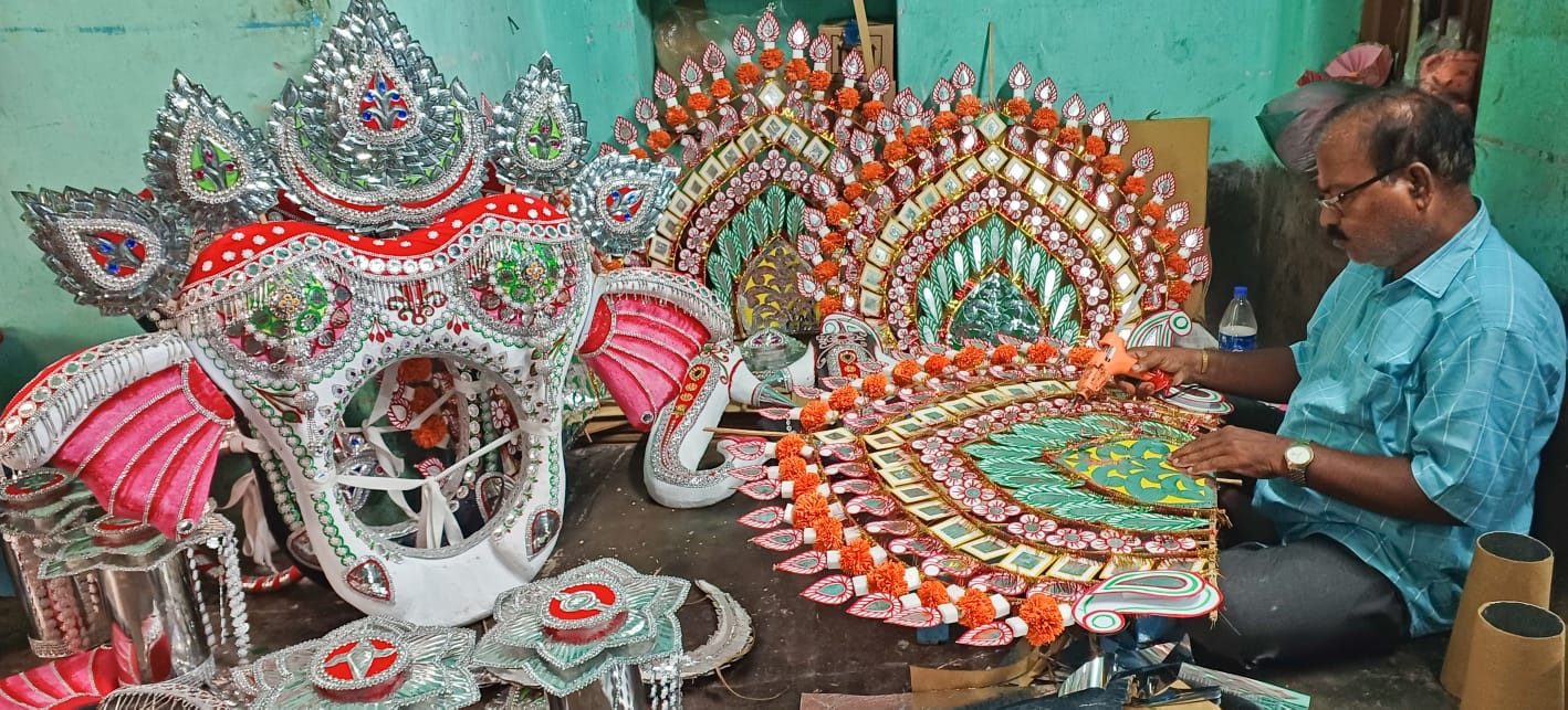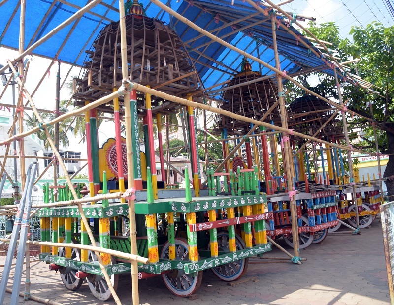 କଟକ ଫିରିଙ୍ଗ ବଜାର ଅଂଚଳରେ ଦେବସ୍ନାନ ପୂର୍ଣ୍ଣିମାରେ ଶ୍ରୀଜୀଉଙ୍କ ପହଣ୍ଡି ନୀତି ପାଇଁ ଟାହିଆ ପ୍ରସ୍ତୁତ କରୁଛନ୍ତି କାରିଗର କଟକ ଚାନ୍ଦିନୀଚୌକ ଜଗନ୍ନାଥ ମନ୍ଦିରଠାରେ ରଥ ଯାତ୍ରା ପାଇଁ ରଥ ଚକ ନିର୍ମାଣ ଚାଲିଛି