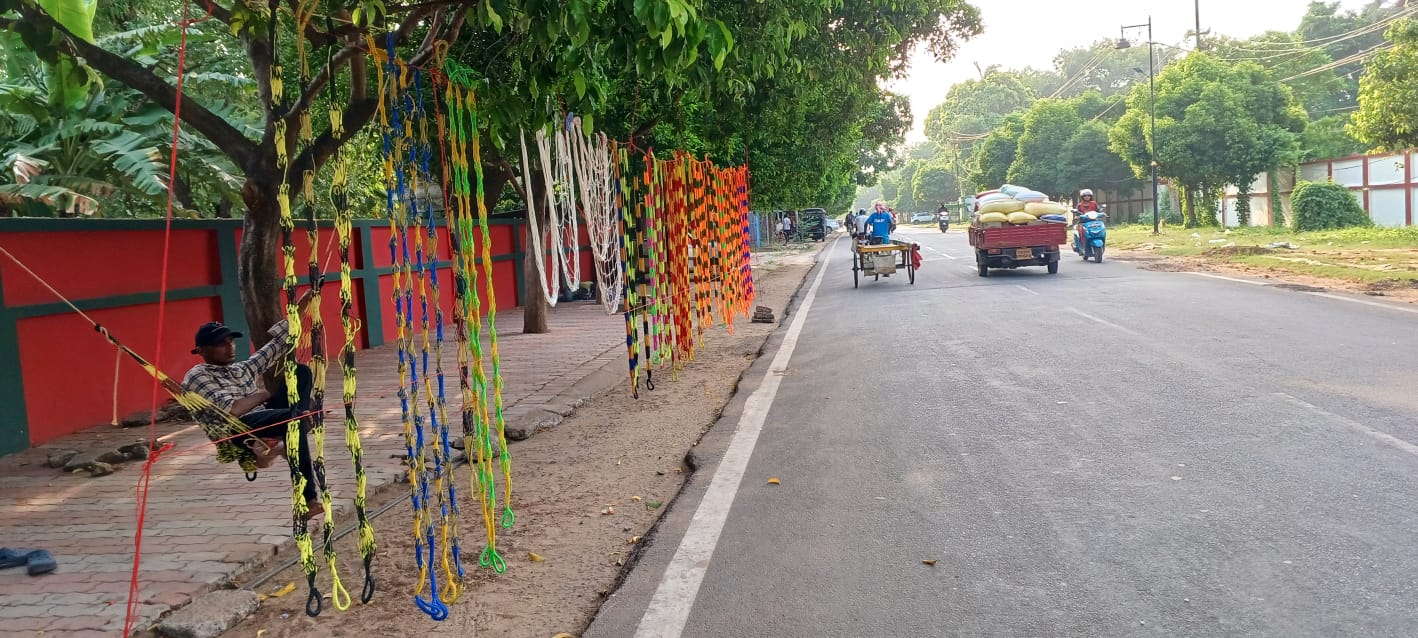 କଟକ କ୍ୟାଣ୍ଟନମେଣ୍ଟ ରୋଡ ପାର୍ଶ୍ୱରେ ପ୍ଲାଷ୍ଟିକ ଦୌଡ଼ିରେ ନିର୍ମିତ ଦୋଳି ବିକ୍ରୟ ପାଇଁ ଗ୍ରାହକଙ୍କ ଅପେକ୍ଷାରେ ବୁଲା ବ୍ୟବସାୟୀ ରଥର ଅଖ ଚକ ସଂଯୋଗ ପାଇଁ ମହାପ୍ରଭୁଙ୍କ ଆଜ୍ଞାମାଳ ପୂଜାପଣ୍ଡା ସାମନ୍ତ ରଥଖଳାକୁ ନେଉଛନ୍ତି