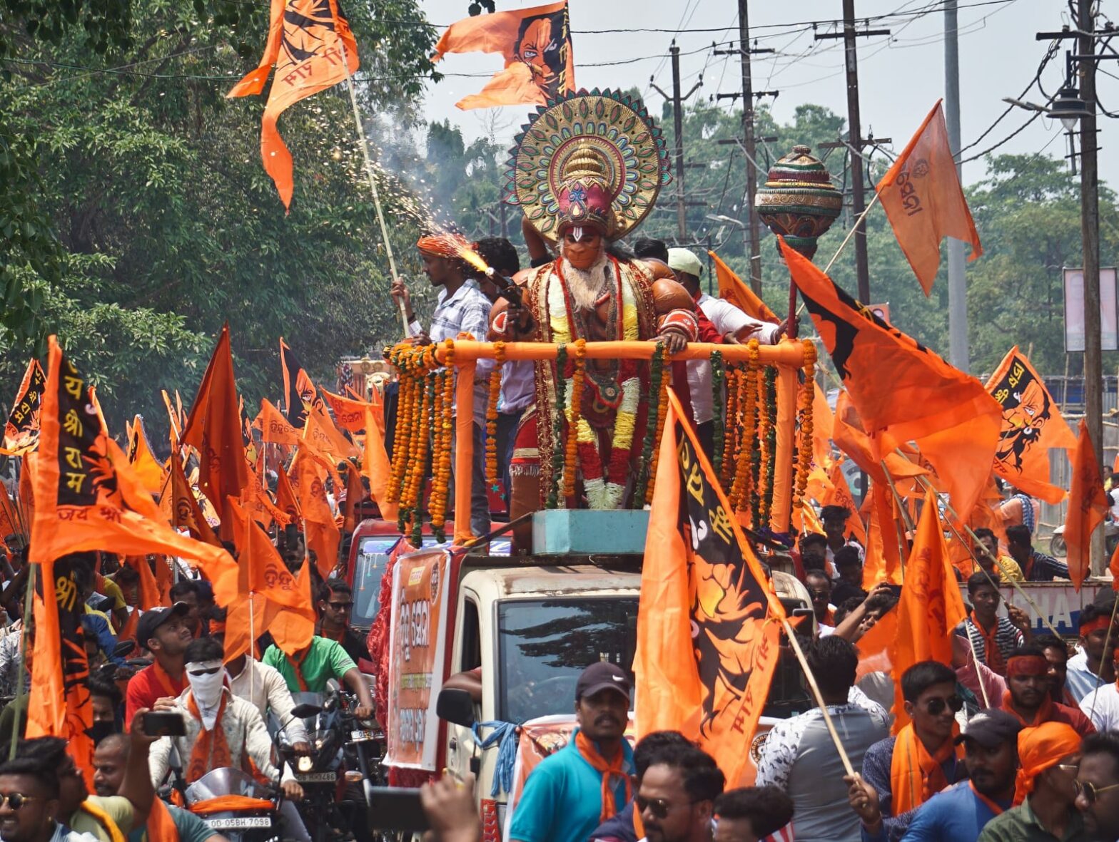 ଓଡ଼ିଆ ନବ ବର୍ଷ ଅବସର ରେ ବାରବାଟୀ ଦୁର୍ଗ ନିକଟରୁ ହିନ୍ଦୁ ସେନା ପକ୍ଷ୍ୟରୁ ବାହାରିଥିବା ମହାବୀର ଧ୍ବଜା ଶୋଭାଯାତ୍ରା କଟକ ବକ୍ସି ବଜ଼ାର ଅନୁଷ୍ଠିତ ଝାମୁ ଯାତ୍ରା