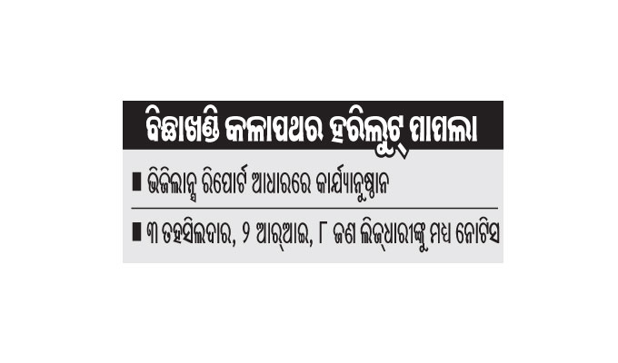 ଯାଜପୁର ଅଫିସ,୬।୫: ଯାଜପୁର ଜିଲା ଧର୍ମଶାଳା ତହସିଲ ଅଧୀନ ବିଛାଖଣ୍ଡି କଳାପଥର ଖାଦାନରୁ ହରିଲୁଟ ମାମଲାରେ କଟକ ଭିଜିଲାନ୍ସ ନିର୍ଦ୍ଦେଶକଙ୍କ ପକ୍ଷରୁ ଲୋକାୟୁକ୍ତରେ ତଦନ୍ତ ରିପୋର୍ଟ ଦାଖଲ…