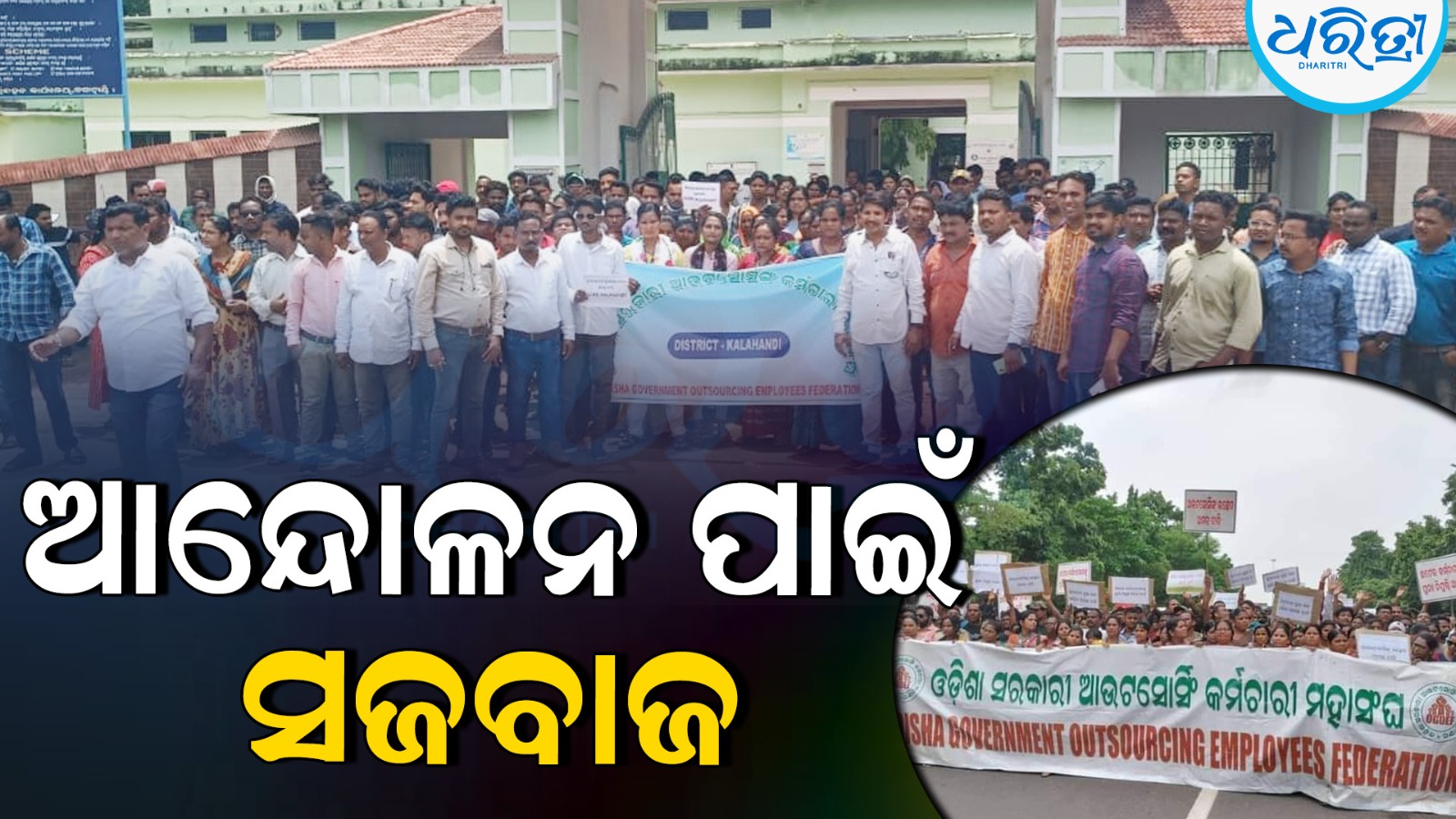 ରାଜ୍ୟ ଆଉଟସୋର୍ସିଂ ନେତୃ ମଣ୍ଡଳୀର ନିର୍ଦ୍ଦେଶ କ୍ରମେ ମାର୍ଚ୍ଚ ୧୭ରୁ ରାଜ୍ୟର ସମସ୍ତ ସରକାରୀ ଆଉଟସୋର୍ସିଂ କର୍ମଚାରୀ କଳା ବ୍ୟାଜ ପିନ୍ଧି ପ୍ରତିବାଦ କରି ଆସୁଛନ୍ତି। ଉକ୍ତ କର୍ମଚାରୀବୃନ୍ଦ ମୁଖ୍ୟମନ୍ତ୍ରୀଙ୍କ ଉଦ୍ଦେଶ୍ୟରେ କଳାହାଣ୍ଡି ଜିଲାପାଳଙ୍କୁ ଦାବିପତ୍ର ପ୍ରଦାନ କରିଥିଲେ। ଏଥିରେ ୩ଦଫା ଦାବି ଯଥା ଛଟେଇ ବନ୍ଦ ସହ ଛଟେଇ କର୍ମଚାରୀଙ୍କୁ ପୁନଃ ନିଯୁକ୍ତି, ଦୈନିକ ବେତନଧାରିଙ୍କୁ ମାସିକ ଦରମା ସହ ସମସ୍ତ ବର୍ଗର ଆଉଟସୋର୍ସିଂ କର୍ମଚାରୀ ଙ୍କୁ ସ୍ଥାୟୀ କରିବା ପାଇଁ ଉଲ୍ଲେଖ କରାଯାଇଛି l ଯଦି ସରକାର ଏହି ସମୟ ମଧ୍ୟରେ ଦାବି ଗୁଡିକ ପୂରଣ ନ କରନ୍ତି, ତାହେଲେ ଆସନ୍ତା ୨୬ରେ ସମସ୍ତ ବର୍ଗର ସରକାରୀ ଆଉଟସୋର୍ସିଂ କର୍ମଚାରୀ ଏକତ୍ରୀତ ହୋଇ ଭୁବନେଶ୍ବରର ଗାନ୍ଧୀ ମାର୍ଗରେ ବିଶାଳ ଆନ୍ଦୋଳନରେ ସାମିଲ ହେବେ ବୋଲି ଜିଲା ସଭାପତି ସୁଜିତ୍ କୁମାର ବିଶ୍ବାଳ ପ୍ରକାଶ କରିଛନ୍ତି l ଏହିଠାରେ ଉପସ୍ଥିତ ଥିବା ଜିଲ୍ଲା ସମ୍ପାଦକ ବିନୟ ପାତ୍ର, ଉପ ସଭାପତି ଅବକାଶ ଠାକୁର, କୋଷାଧ୍ୟକ୍ଷ କୈଳାସ ଚନ୍ଦ୍ର ବlଣୁଆ, ଜିଲ୍ଲା ମିଡିଆ ସଂଯୋଜକ ଶେଷଦେବ ନାୟକ ସରକାରଙ୍କ ବୈମାତୃକ ମନୋଭାବ ଉପରେ ଆଲୋକପାତ କରିଥିଲେ ଓ ଆନ୍ଦୋଳନ କୁ ସଫଳ କରିବା ପାଇଁ କହିଥିଲେ l