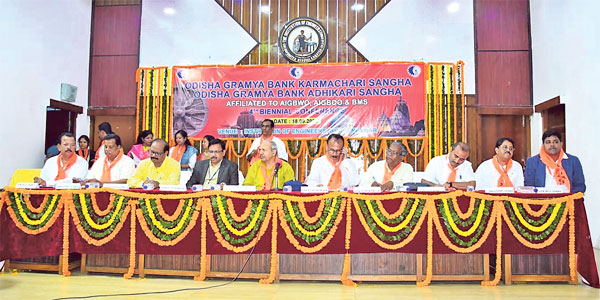 ଭୁବନେଶ୍ୱର,୨୧ା୯: ଭାରତୀୟ ମଜଦୁର ସଂଘ ଦ୍ୱାରା ସମ୍ବର୍ଦ୍ଧିତ ଓଡ଼ିଶା ଗ୍ରାମ୍ୟ ବ୍ୟାଙ୍କ କର୍ମଚାରୀ ସଂଘ (ଓଜିବିକେଏସ୍) ଏବଂ ଓଡ଼ିଶା ଗ୍ରାମ୍ୟ ବ୍ୟାଙ୍କ ଅଧିକାରୀ ସଂଘ (ଓଜିବିଏଏସ୍)ର ୪ର୍ଥ ଦ୍ୱିବାର୍ଷିକ ସାଧାରଣ ଅଧିବେଶନ ନିକଟରେ ସ୍ଥାନୀୟ ଇନ୍ଷ୍ଟିଚ୍ୟୁଟ୍ ଅଫ୍ ଇଞ୍ଜିନିୟର୍ସଠାରେ ଅନୁଷ୍ଠିତ ହୋଇଯାଇଛି। ଏହି ଅବସରରେ ଭାରତୀୟ ମଜଦୁର ସଂଘର ସର୍ବଭାରତୀୟ ସ୍ତରର ସାଧାରଣ ସମ୍ପାଦକ ଗିରୀଶ ଚନ୍ଦ୍ର ଆର୍ଯ୍ୟ ମୁଖ୍ୟ ଅତିଥି ଭାବେ ଯୋଗଦେଇଥିଲେ। ସେହିଭଳି ଓଡ଼ିଶା ଗ୍ରାମ୍ୟ ବ୍ୟାଙ୍କର ମହାପ୍ରବନ୍ଧକ ବସନ୍ତ କୁମାର ପାତ୍ର ଏବଂ ଜଗନ୍ନାଥ ପ୍ରସାଦ ନାୟକ ସମ୍ମାନିତ ଅତିଥିଭାବେ ଯୋଗଦେଇ ବ୍ୟାଙ୍କକୁ ଉନ୍ନତିମୂଳକ ସ୍ଥିତିରେ ପହଞ୍ଚାଇବାକୁ ଆହ୍ବାନ ଦେଇଥିଲେ। ଅନ୍ୟମାନଙ୍କ ମଧ୍ୟରେ ଭାରତୀୟ ମଜଦୁର ସଂଘର ରାଜ୍ୟ ସଭାପତି ପୃଥୀରାଜ ପଣ୍ଡା, ରାଜ୍ୟ ସାଙ୍ଗଠନିକ ମନ୍ତ୍ରୀ ଗିରୀଶ ଚନ୍ଦ୍ର ମହନ୍ତ ଏବଂ ସର୍ବଭାରତୀୟ ଗ୍ରାମୀଣ ବ୍ୟାଙ୍କର ମଜଦୁର ସଂଘର ସାଧାରଣ ସମ୍ପାଦକ ନିଶାନ୍ତ ସାଖି ପ୍ରମୁଖ ଅତିଥି ଭାବେ ଯୋଗଦେଇ ସଂଘକୁ ସୁଦୃଢ଼ କରିବା ପାଇଁ ପରାମର୍ଶ ଦେଇଥିଲେ। ସେହିପରି ଓଜିବିକେଏସ୍ର ମୁଖ୍ୟ ଉପଦେଷ୍ଟା ସରୋଜ କୁମାର ପ୍ରଧାନ ଅତିଥିଭାବେ ଯୋଗଦେଇ ଆଞ୍ଚଳିକ ଗ୍ରାମୀଣ ବ୍ୟାଙ୍କର ସମସ୍ୟାଗୁଡିକ ବିଷୟରେ ସମସ୍ତଙ୍କୁ ଅବଗତ କରାଇଥିଲେ।