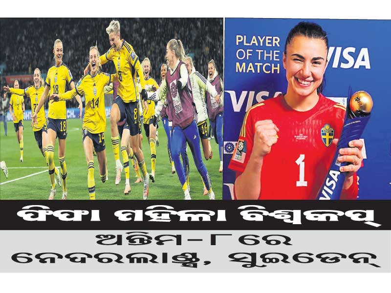 ସିଡ୍ନୀ,୭ା୮(ପି.ଟି.): ଅଷ୍ଟ୍ରେଲିଆ ଓ ନ୍ୟୁଜିଲାଣ୍ଡରେ ଅନୁଷ୍ଠିତ ମହିଳା ଫୁଟବଲ୍ ବିଶ୍ୱକପ୍ରେ ରବିବାର ଏକ ବଡ ବିପର୍ଯ୍ୟୟ ଦେଖିବାକୁ ମିଳିଛି। ଡିଫେଣ୍ଡିଂ ଚାମ୍ପିୟନ ଯୁକ୍ତରାଷ୍ଟ୍ର ଆମେରିକାକୁ ବିଦା କରି ଅନ୍ତିମ-୮ରେ ସ୍ଥାନ ସୁରକ୍ଷିତ କରିଛି ସୁଇଡେନ୍। ଅନ୍ୟପକ୍ଷରେ ବିଗତ ସଂସ୍କରଣର ରନର ଅପ୍ ନେଦରଲାଣ୍ଡ୍ସ ୨-୦ ଗୋଲରେ ଦକ୍ଷିଣ ଆଫ୍ରିକାକୁ ପରାସ୍ତ କରିଛି।