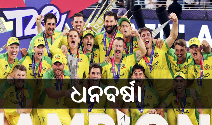 ଦୁବାଇ,୧୫।୧୧:: ଅଷ୍ଟ୍ରେଲିଆ ଟି -୨୦ ବିଶ୍ୱକପ ୨୦୨୧ର ଅନ୍ତିମ ମ୍ୟାଚରେ ନ୍ୟୁଜିଲାଣ୍ଡକୁ ୮ ଉଇକେଟରେ ପରାସ୍ତ କରି ପ୍ରଥମ ଥର ପାଇଁ ଟି -୨୦ ବିଶ୍ୱ ଚାମ୍ପିୟନ ହୋଇଛି। ଅଷ୍ଟ୍ରେଲିଆ ଟି -୨୦ ବିଶ୍ୱକପ୍ ଟ୍ରଫି ସହିତ ପୁରସ୍କାରରେ କୋଟି କୋଟି ଟଙ୍କା ପାଇଛି। ବିଶ୍ୱ ଚାମ୍ପିୟନ ଅଷ୍ଟ୍ରେଲିଆକୁ ୧.୬ ମିଲିୟନ ଡଲାର ଅର୍ଥାତ୍ ପ୍ରାୟ ୧୨ କୋଟି ଟଙ୍କା ମିଳିଛି। ଫାଇନାଲରେ ପରାଜୟ ସତ୍ତ୍ୱେ ନ୍ୟୁଜିଲାଣ୍ଡ ଦଳ ଉପରେ ମଧ୍ୟ ଧନ ବର୍ଷା ହୋଇଛି।