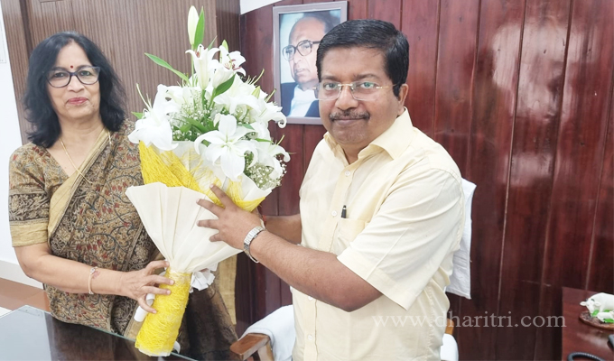 ଭୁବନେଶ୍ୱର,୧୭ା୬(ଅସମାପିକା ସାହୁ): ଉତ୍କଳ ବିଶ୍ୱବିଦ୍ୟାଳୟର କୁଳପତି ପ୍ରଫେସର ସବିତା ଆଚାର୍ଯ୍ୟ ଶନିବାର ଲୋକସେବା ଭବନଠାରେ ଉଚ୍ଚଶିକ୍ଷା ମନ୍ତ୍ରୀ ଅତନୁ ସବ୍ୟସାଚୀ ନାୟକଙ୍କୁ ସାକ୍ଷାତ କରି ଆଲୋଚନା କରିଛନ୍ତି।