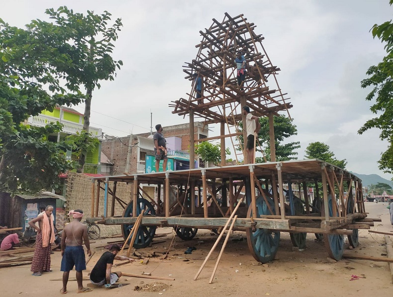ବୁଗୁଡ଼ା,୨୯।୬(ଡି.ଏନ୍.ଏ): ଆସନ୍ତା ଜୁଲାଇ ୧ରେ ହେବାକୁ ଯାଉଥିବା ଗୁଣ୍ଡିଚା ଯାତ୍ରା ଉପଲକ୍ଷେ ଗଞ୍ଜାମ ଜିଲା ବୁଗୁଡ଼ା ବଡ଼ଦାଣ୍ଡସ୍ଥ ରଥଖଳାରେ ରଥ ନିର୍ମାଣ କାର୍ଯ୍ୟ ଜୋରସୋରରେ ଚାଲିଛି। ବର୍ତ୍ତମାନ ସୁଦ୍ଧା ରଥର ଚକ ଅଖ ଯୋଗ, ବ୍ରାନ୍ଦ, ମୁହାଣ୍ଡି, ନାହାକ କୁମ୍ଭ ଓ ଚାରି ପୁର ଛନ୍ଦ କାମ ସରିଥିବା ବେଳେ ଅଁଳା ଶ୍ରୀ, କଳସ ଉଠାଣ, ଶୁଆ ବନ୍ଧା ଓ ବେଦି ଘର କାମ କରିବାକୁ ବାକି ରହିଛି। ୪୫ ଫୁଟ ଉଚ୍ଚତା ବିଶିଷ୍ଟ ଉକ୍ତ ରଥ ନିର୍ମାଣ କାର୍ଯ୍ୟ କାରିଗର କାଳିଆ ମହାରଣାଙ୍କ ନେତୃତ୍ୱରେ ସୁମନ୍ତ ମହାରଣା, ରବି ଘଡେଇ ଓ ପ୍ରଦ୍ୟୁମ୍ନ ନାହକଙ୍କ ଦ୍ବାରା ଚାଲିଥିବା ବେଳେ ଏଥିରେ ଯୁବକ ସଂଘ ସକ୍ରିୟ ସହଯୋଗ କରୁଛନ୍ତି। ଅନ୍ୟପକ୍ଷରେ ଠାକୁର ଅଣସର ଘରେ ଥିବା ବେଳେ ଶିଳ୍ପୀ ସ୍ଥିତଧୀ ରଥଙ୍କ ଦ୍ୱାରା ବନକ କାର୍ଯ୍ୟ ଚାଲୁରହିଛି। ଗତ ଦୁଇ ବର୍ଷ ହେଲା କରୋନା ମହାମାରୀ ଯୋଗୁ ରଥଯାତ୍ରା ବନ୍ଦ ରହିଥିଲା। ହେଲେ ଚଳିତବର୍ଷ ରଥଯାତ୍ରା ହେଉଥିବାରୁ ଲୋକେ ବେଶ୍ ଉତ୍ସାହ ଓ ଉତ୍କଣ୍ଠାର ସହ ଅପେକ୍ଷା କରି ରହିଛନ୍ତି।
