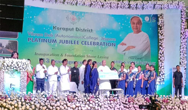 କୋରାପୁଟ,୩।୨(ସ୍ବ.ପ୍ର. ): ମୁଖ୍ୟମନ୍ତ୍ରୀ ନବୀନ ପଟ୍ଟନାୟକ ଶୁକ୍ରବାର ଜୟପୁରର ବିକ୍ରମଦେବ ସ୍ବୟଂଶାସିତ କଲେଜର ପ୍ଲାଟିନମ ଜୁବୁଲି ଉତ୍ସବରେ ଯୋଗ ଦେଇଛନ୍ତି। ଏହି ଅବସରରେ ମୁଖ୍ୟମନ୍ତ୍ରୀ କଲେଜରେ ଏକ ଅତ୍ୟାଧୁନିକ ଅଡିଟୋରିୟମ ନିର୍ମାଣ କରିବାକୁ ଘୋଷଣା କରିଛନ୍ତି। ୧୦୦୦ ଆସନ ବିଶିଷ୍ଟ ଅଡିଟୋରୟମ ପାଇଁ ୮ କୋଟି ଟଙ୍କା ଖର୍ଚ୍ଚ କରାଯିବ। ସେହିପରି କୋରାପୁଟ ଜିଲା ପାଇଁ ୧୬୦୦ କୋଟି ଟଙ୍କାର ବିଭିନ୍ନ ପ୍ରକଳ୍ପ ଶୁଭାରମ୍ଭ କରିଛନ୍ତି। ଶୁକ୍ରବାର ମୁଖ୍ୟମନ୍ତ୍ରୀ ଏଥିରେ ୨୦୭.୮୦ କୋଟି ଟଙ୍କାର ପ୍ରକଳ୍ପ ଉଦ୍ଘାଟିତ ହୋଇଥିବା ବେଳେ ୧୩୭୮.୪୦ କୋଟି ଟଙ୍କାର ବିଭିନ୍ନ ପ୍ରକଳ୍ପ ପାଇଁ ଭିତ୍ତିସ୍ଥାପନ କରାଯାଇଛି।