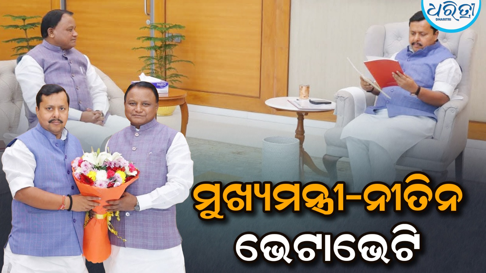 ନୂଆଦିଲ୍ଲୀ/ଭୁବନେଶ୍ୱର,୨୭ା୨: ଭାଜପା ରାଷ୍ଟ୍ରୀୟ ଅଧ୍ୟକ୍ଷ ନୀତିନ ନବୀନଙ୍କୁ ଶୁକ୍ରବାର ଭେଟିଛନ୍ତି ମୁଖ୍ୟମନ୍ତ୍ରୀ ମୋହନ ଚରଣ ମାଝୀ। ନୂଆଦିଲ୍ଲୀ ଭାଜପା ମୁଖ୍ୟାଳୟରେ ରାଷ୍ଟ୍ରୀୟ ଅଧ୍ୟକ୍ଷଙ୍କୁ ଭେଟି ଓଡ଼ିଶାର ଦଳର ସାଂଗଠନିକ ସ୍ଥିତି ଓ ସମନ୍ବୟ ଉପରେ ଆଲୋଚନା କରିଛନ୍ତି।