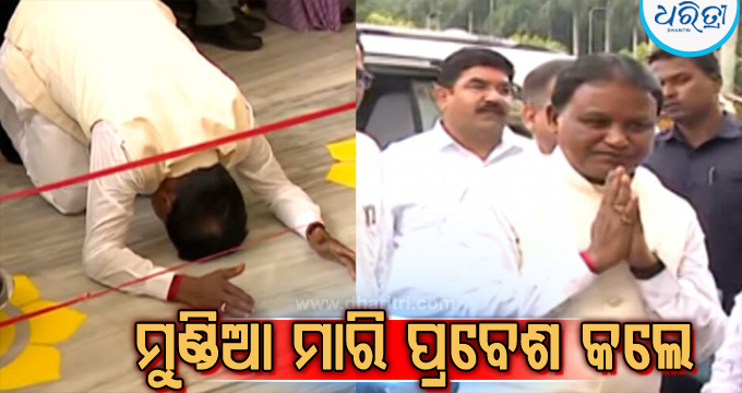 ଭୁବନେଶ୍ୱର,୪।୭: ଲୋକସେବା ଭବନରେ ଆଜି ପ୍ରଥମ ଥର ପାଇଁ ପ୍ରବେଶ କରିଛନ୍ତି ମୁଖ୍ୟମନ୍ତ୍ରୀ ମୋହନ ଚରଣ ମାଝି। ପୂଜାର୍ଚ୍ଚନା ପରେ ମୁଣ୍ଡିଆ ମାରି ସେ ଲୋକସେବା ଭବନରେ ପ୍ରବେଶ କରିଛନ୍ତି। ଲୋକସେବା ଭବନର ତୃତୀୟ ମହଲାରୁ ସେ ଆଜି ବିଧିବଦ୍ଧ ଭାବେ କାର୍ଯ୍ୟ ଆରମ୍ଭ କରିଛନ୍ତି।