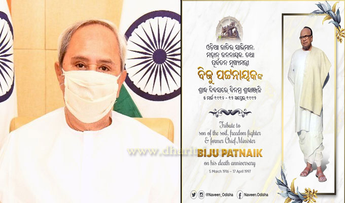 ଭୁବନେଶ୍ୱର,୧୭।୪(ବ୍ୟୁରୋ): ଆଜି ପୂର୍ବତନ ମୁଖ୍ୟମନ୍ତ୍ରୀ ସ୍ବର୍ଗତ ବିଜୁ ପଟ୍ଟନାୟକଙ୍କ ତିରୋଧାନ ଦିବସ। ଏହି ଅବସରରେ ତାଙ୍କୁ ମୁଖ୍ୟମନ୍ତ୍ରୀ ନବୀନ ପଟ୍ଟନାୟକ ଶ୍ରଦ୍ଧାଞ୍ଜଳି ଜଣାଇଛନ୍ତି। ବିଜୁ ବାବୁଙ୍କ ନୀତି ଓ ଆଦର୍ଶ ସର୍ବଦା ଆମକୁ ଲୋକଙ୍କ ସେବା କରିବାକୁ ଅନୁପ୍ରାଣିତ କରିବ । ସେ ଦେଖାଇଥିବା ମାର୍ଗରେ ଏବେ ଓଡ଼ିଶା ବିକାଶର ବିଭିନ୍ନ କ୍ଷେତ୍ରରେ ଅଗ୍ରଣୀ କରିଛି ବୋଲି ଟୁଇଟ୍ କରି ମୁଖ୍ୟମନ୍ତ୍ରୀ କହିଛନ୍ତି।