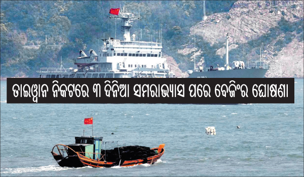 ତାଇପେଇ, ୧୧ା୪ : ତାଇଓ୍ବାନ୍ ଚାରିପଟେ ଚାଇନାର ତିନିଦିନିଆ ସମରାଭ୍ୟାସ ସୋମବାର ଶେଷ ହୋଇଛି। ସମରାଭ୍ୟାସ ଶେଷ ହେବା ପରେ ଲଢ଼ିବା ପାଇଁ ପ୍ରସ୍ତୁତ ବୋଲି ଚାଇନା ସୈନ୍ୟବାହିନୀ ଘୋଷଣା କରିଛି। ଗତ ସପ୍ତାହରେ ତାଇଓ୍ବାନ୍ ରାଷ୍ଟ୍ରପତିଙ୍କ ଆମେରିକା ଗସ୍ତ ପରେ ବେଜିଂ ଭୟ ଦେଖାଇଛି। ସମରାଭ୍ୟାସ ବେଳେ ତାଇଓ୍ବାନ ଦ୍ୱୀପକୁ ଚାଇନା ସମ୍ପୂର୍ଣ୍ଣ ସିଲ୍ କରି ରଖିଥିଲା। ଜଏଣ୍ଟ ସୋର୍ଡ ନାମରେ ଏହି ଯୁଦ୍ଧ ପ୍ରସ୍ତୁତି ପାଟ୍ରୋଲ ସ୍ବଶାସିତ ତାଇଓ୍ବାନ୍କୁ ଏକ ଚେତାବନୀ। ଉକ୍ତ ଭୂଖଣ୍ଡକୁ ଚାଇନା ନିଜର ଦାବି କରିଆସୁଛି। ତାଇଓ୍ବାନର ଯେକୌଣସି ପ୍ରକାର ସ୍ବାଧୀନତା ଏବଂ ବିଦେଶୀ ହସ୍ତକ୍ଷେପକୁ ଧ୍ୱଂସ କରିଦେବା ଲାଗି ସବୁ ସମୟରେ ଲଢ଼ିବା ପାଇଁ ଆମେ ପ୍ରସ୍ତୁତ ବୋଲି ମିଳିତ ସେନା ପକ୍ଷରୁ କୁହାଯାଇଛି।