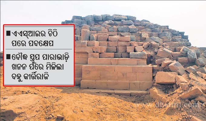 ଯାଜପୁର ଜିଲା ଦର୍ପଣ ତହସିଲ ଅନ୍ତର୍ଗତ ପାରାଭାଡ଼ି ପାହାଡ଼ଟି କେଶରାଇପୁର ରାଜସ୍ବ ମୌଜାରେ ଅବସ୍ଥିତ। ଏହି ପାହାଡ଼ ବନ୍ଦରେଶ୍ୱରଠାରୁ ଆରମ୍ଭ କରି ଲଳିତଗିରି ପର୍ଯ୍ୟନ୍ତ ପରିବ୍ୟାପ୍ତ। ଯାଜପୁର ଓ କଟକ ଜିଲାର ସଂଗମସ୍ଥଳରେ ରହିଥିବା ଏହି ପାହାଡ଼ରୁ ପୂର୍ବରୁ ୩୬ଟି ବୌଦ୍ଧ କୀର୍ତ୍ତିରାଜି ଆବିଷ୍କୃତ ହୋଇ ଲଳିତଗିରି ମ୍ୟୁଜିୟମ୍ ଓ ଭୁବନେଶ୍ୱର ଷ୍ଟେଟ୍ ମ୍ୟୁଜିୟମ୍ରେ ରହିଛି। ରାଜ୍ୟ ସରକାରଙ୍କ ତରଫରୁ ଏହି ପାହାଡ଼ରୁ ଖଣ୍ଡୋଲାଇଟ୍ ଖଣି ଖନନ କରି ପୁରୀର ସୌନ୍ଦର୍ଯ୍ୟକରଣ ପାଇଁ ପଥର ନେବାକୁ ୨୦୨୧ରେ ଯୋଜନା କରାଯାଇଥିଲା। ୨୦୨୨ରେ ପଥର ଖଣି ଖନନ ଆରମ୍ଭ ହୋଇଥିଲା। ସେ ସମୟରେ ବୁଦ୍ଧାୟନ ତରଫରୁ ଏହାକୁ ବିରୋଧ କରାଯାଇଥିଲେ ମଧ୍ୟ ଓଏମ୍ସି ଖନନ ଜାରି ରଖିଥିଲା। ଏନେଇ ଗତ ଡିସେମ୍ବର ୨୫ରେ ‘ବିପଦରେ ବୌଦ୍ଧସ୍ତୁପ ପାରାଭାଡ଼ି’ ଶୀର୍ଷକ ଖବର ‘ଧରିତ୍ରୀ’ରେ ପ୍ରକାଶ ପାଇଥିଲା। ଉକ୍ତ ଖବର ପ୍ରକାଶ ପରେ ଏଏସ୍ଆଇ କର୍ତ୍ତୃପକ୍ଷ ଘଟଣାସ୍ଥଳକୁ ଆସି ତଦାରଖ କରିଥିଲେ। ଏ ସମ୍ପର୍କରେ ଭାରତୀୟ ପ୍ରନତ୍ତାତ୍ତ୍ୱିକ ବିଭାଗର ପୁରୀ ସର୍କଲ ଅଧ୍ୟକ୍ଷ ବ୍ରଜସୁନ୍ଦର ଗଡ଼ନାୟକ କହିଛନ୍ତି, ଆମେ ପ୍ରଥମେ କ୍ଷେତ୍ର ପରିଦର୍ଶନ କରିବା ପରେ ଜାନୁୟାରୀରେ ଓଏମ୍ସିକୁ ଖଣି ଖନନ ବନ୍ଦ ପାଇଁ ନିର୍ଦ୍ଦେଶ ଦେଇଥିଲୁ। ଏହାପରେ ଏବେ ପାରାଭାଡ଼ି ବୌଦ୍ଧସ୍ତୁପ ଖନନ କାର୍ଯ୍ୟ ଆରମ୍ଭ ହୋଇଛି। ଯେଉଁଠୁ ୪ରୁ ୫ମିଟର ଉଚ୍ଚତାର ବୌଦ୍ଧସ୍ତୁପ ମିଳିଥିବାବେଳେ ବହୁ ପ୍ରାଚୀନ କୀର୍ତ୍ତିରାଜି ମଧ୍ୟ ଆବିଷ୍କୃତ ହୋଇଛି, ଯାହାକି ୧୩ଶହ ବର୍ଷ ତଳର। ସମୁଦ୍ର ପତନଠାରୁ ଏହି ସ୍ତୁପର ଉଚ୍ଚତା ସର୍ବାଧିକ ରହିଛି। ଖଣି ଖନନ ସମୟରେ ବହୁ କୀର୍ତ୍ତିରାଜିକୁ ନଷ୍ଟ କରି ଦିଆଯାଇଛି। ଏଠାରୁ ଆବିଷ୍କୃତ କୀର୍ତ୍ତିରାଜିଗୁଡ଼ିକ ସପ୍ତମ ଓ ଅଷ୍ଟମ ଶତାବ୍ଦୀର। ଏଏସ୍ଆଇ ତରଫରୁ ଏହାକୁ ବୁଦ୍ଧିଷ୍ଟ ସର୍କିଟ କରାଯିବା ପାଇଁ ଯୋଜନା ରହିଥିବା ସେ ପ୍ରକାଶ କରିଛନ୍ତି। ୨୦୧୨ରୁ ଲଗାତର ଭାବେ ‘ଧରିତ୍ରୀ’ରେ ପାରାଭାଡ଼ି ବୌଦ୍ଧସ୍ତୁପ ସମ୍ପର୍କରେ ଖବର ପ୍ରକାଶ ହୋଇଆସୁଛି। ଏଠାରେ ୭ଟି ଗୁମ୍ଫା ରହିଛି, ଯାହାକି ହାତିଖାଲ ନାମରେ ପରିଚିତ। ପାରାଭାଡ଼ି ସ୍ତୁପର ୫୦ମିଟର ତଳେ ବୌଦ୍ଧଯୁଗୀୟ ତାରାମୂର୍ତ୍ତି ରହିଛି। ସ୍ଥାନୀୟ ଲୋକେ ଘଣ୍ଟିଆଶୁଣି ଭାବରେ ଏହାକୁ ପୂଜାର୍ଚ୍ଚନା କରୁଛନ୍ତି। ଏହି ସ୍ତୁପର ଚତୁଃପାର୍ଶ୍ୱ ୪୬ ଏକର ସ୍ଥାନକୁ ଏଏସ୍ଆଇ ଚିହ୍ନଟ କରିସାରିଛି।