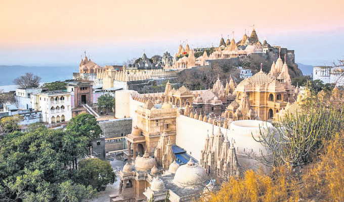 ପାହାଡ଼ ପାଦଦେଶରୁ ପାହାଡ଼ ଶୀର୍ଷରେ ଥିବା ଶେଷ ମନ୍ଦିରଯାଏ ୧୦,୦୦୦ ଶିଡ଼ି ରହିଥିବା କୁହାଯାଏ। ତେବେ ୭୦୦୦ ଶିଡ଼ି ଚଢ଼ିବା ପରେ ପ୍ରଥମ ମନ୍ଦିର ଆସିଥାଏ। ସେହି ସ୍ଥାନରେ ୫ଟି ମନ୍ଦିର ରହିଛି, ଯେଉଁଠାରେ ଜୈନ ଭକ୍ତମାନେ ପୂଜା କରିଥା’ନ୍ତି।