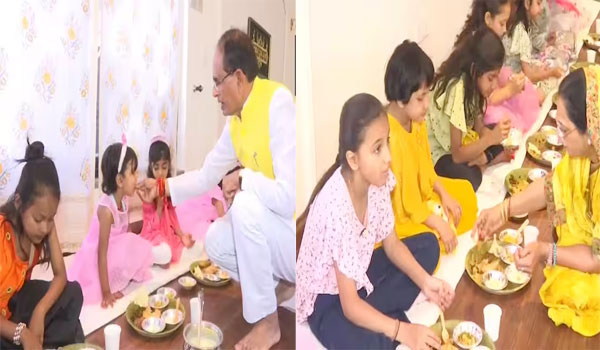 ଭୋପାଳ,୩୦।୪: ସାରାଦେଶରେ ଗୁରୁବାର ରାମ ନବମୀ ବହୁ ଆଡ଼ମ୍ବରରେ ପାଳନ କରାଯାଇଛି। ଇତିମଧ୍ୟରେ ନବରାତ୍ରୀର ନବମୀ ଦିନରେ ମୁଖ୍ୟମନ୍ତ୍ରୀଙ୍କ ବାସଭବନରେ ରୀତିନୀତିରେ କନ୍ୟା ପୂଜା ସମ୍ପନ୍ନ ହୋଇଛି। ମୁଖ୍ୟମନ୍ତ୍ରୀ ଶିବରାଜ ସିଂହ ଚୌହାନ ସକାଳୁ କନ୍ୟା ବା ଛୋଟ ଛୋଟ ଝିଅମାନଙ୍କୁ ଘରକୁ ଡାକି ଭୋଜନ କରାଇଥିଲେ। ଏହି ସମୟରେ ମୁଖ୍ୟମନ୍ତ୍ରୀଙ୍କ ସହ ତାଙ୍କ ପତ୍ନୀ ସାଧନା ସିଂହ ମଧ୍ୟ ଉପସ୍ଥିତ ଥିଲେ। ୯ଜଣ କନ୍ୟାମାନଙ୍କୁ ଚନ୍ଦନ ଲଗାଇ ଭୋଜନ କରାଇବା ପରେ ମୁଖ୍ୟମନ୍ତ୍ରୀ ତାଙ୍କୁ ଉପହାର ଭେଟି ଦେଇଥିଲେ। ଏହି ସମୟରେ ମୁଖ୍ୟମନ୍ତ୍ରୀ ଶିବରାଜ ଏବଂ ତାଙ୍କ ପତ୍ନୀ ସାଧନା ମଧ୍ୟ ପିଲାଙ୍କୁ ଖୁଆଇଦେଉଥିବା ଦେଖିବାକୁ ମିଳିଛି।