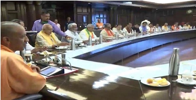 ଲକ୍ଷ୍ନୌ,୨୬ ।୩: ଚଳିତ ବିଧାନସଭା ନିର୍ବାଚରେ ବହୁମାତ୍ରାରେ ଭୋଟ ପାଇ ବିଜୟ ଲାଭ କରିବା ପରେ ଉତ୍ତର ପ୍ରଦେଶ ମୁଖ୍ୟମନ୍ତ୍ରୀ ଭାବେ ଦ୍ୱିତୀୟଥର ଲାଗି ଯୋଗୀ ଆଦିତ୍ୟନାଥ ଶୁକ୍ରବାର ଶପଥ ଗ୍ରହଣ କରିଛନ୍ତି । ଲକ୍ଷ୍ନୌର ଅଟଳ ବିହାରି ବାଜପେୟୀ ଇକାନା ଷ୍ଟାଡିୟମରେ ଏକ ଐତିହାସିକ ଶପଥ ଗ୍ରହଣ ଉତ୍ସବରେ ଯୋଗୀ ଓ ତାଙ୍କ ମନ୍ତ୍ରୀମଣ୍ଡଳ ଶପଥ ନେଇଛନ୍ତି । ତେବେ ଶପଥ ଗ୍ରହଣ ଉତ୍ସବ ସରୁ ସରୁ ମୁଖ୍ୟମନ୍ତ୍ରୀ ଯୋଗୀ ଆଦିତ୍ୟନାଥ ଏକ କ୍ୟାବିନଟ ବୈଠକ ଡାକିଥିଲେ । ଅବଶ୍ୟ ଏହି ବୈଠକରେ ସେମିତି କିଛି ନିଷ୍ପତ୍ତି ନିଆଯାଇ ନାହିଁ । ଏହି ବୈଠକରେ କେବଳ ମନ୍ତ୍ରୀମାନଙ୍କର ପରିଚୟ ହୋଇଛି । ଶନିବାର ସକାଳ ୧୦ଟାରେ ଯୋଗୀ ସରକାର ୨.୦ର କ୍ୟାବିନେଟ ବୈଠକ ଅନୁଷ୍ଠିତ ହେବ । ଅନୁମାନ କରାଯାଉଛି କି ଏହି ବୈଠକ ପରେ ସରକାର କିଛି ବଡ ନିଷ୍ପତ୍ତି ନେଇ ପାରନ୍ତି । ଏହାପରେ ସାଢେ ୧୧ଟାରେ ମୁଖ୍ୟମନ୍ତ୍ରୀ ଯୋଗୀ ଆଦିତ୍ୟନାଥ ସରିବସ୍ତରର ଉର୍ଦ୍ଧ୍ୱରେ ଅଧିକାରୀଙ୍କ ସହ ଯୋଜନା ଭବନରେ ବୈଠକ କରିବେ ।