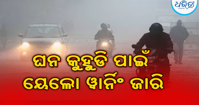 ଏଥିପାଇଁ ସୁନ୍ଦରଗଡ, ନୟାଗଡ଼, ଖୋର୍ଦ୍ଧା, କଳାହାଣ୍ଡି, କନ୍ଧମାଳ ଜିଲାର ଗୋଟିଏ କିମ୍ବା ଦୁଇଟି ସ୍ଥାନରେ ଘନ କୁହୁଡି ହେବାର ସମ୍ଭାବନା ଥିବାରୁ ୟେଲୋ ୱାର୍ନିଂ ଜାରି କରାଯାଇଛି।