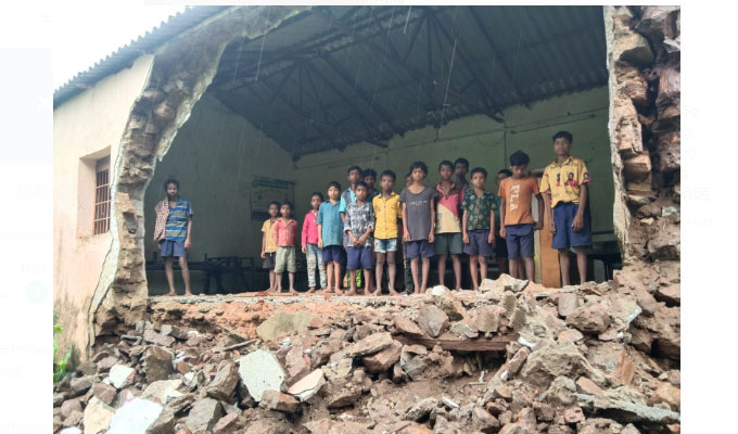 ପାରଳାଖେମୁଣ୍ଡି(ଗିରିଧାରୀ ପରିଛା):୨୦।୯: ବଙ୍ଗୋପସାଗରରେ ସୃଷ୍ଟି ହୋଇଥିବା ଲଘୁଚାପ ପ୍ରଭାବରେ ଗତ ୨ଦିନ ଧରି ଗଜପତି ଜିଲାରେ ବର୍ଷା ଲାଗିରହିଛି । ଲଗାଣ ବର୍ଷାର ପ୍ରଭାବରେ ଜିଲାର ରାୟଗଡ ବ୍ଲକ ଗଙ୍ଗାବାଡ଼ ପଞ୍ଚାୟତର ଆପଗ୍ରେଡ୍ ଆବାସିକ ହାଇସ୍କୁଲର ହୋଷ୍ଟେଲ କାନ୍ଥ ବୁଧବାର ଭୋରରୁ ଭୁଶୁଡି ପଡ଼ିଛି। ଫଳରେ ୪୦ ଜଣ ଛାତ୍ର ବିପଦ ସଙ୍କୁଳ ଅବସ୍ଥାରେ ଭଙ୍ଗା କୋଠରୀରେ ଅଛନ୍ତି । ବର୍ଷା ଲାଗିରହିଥିବା ହେତୁ ପିଲାମାନେ ନାହିଁନଥିବା ଅସୁଭିଧାର ସମ୍ମୁଖୀନ ହେଉଛନ୍ତି । ବର୍ତ୍ତମାନ ଯାଏ ପ୍ରଶାସନ ତରଫରୁ କୌଣସି ଅଧିକାରୀ ଘଟଣାସ୍ଥଳେ ପହଞ୍ଚି ନ ଥିବା ସୂଚନା ମିଳିଛି ।