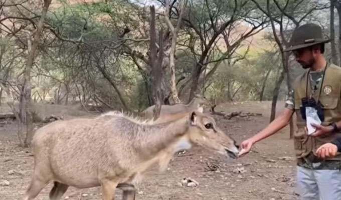 ଜୟପୁର,୧୭ା୪: ଜୟପୁରର ଝଲାନାସ୍ଥିତ କଲରାପତରିଆ ବାଘ ସଂରକ୍ଷଣ ଜଙ୍ଗଲରେ ହାସ୍ୟାଭିନେତା ଶ୍ୟାମ ରଙ୍ଗିଲା ଏକ ନୀଳଗାଈକୁ ଖାଦ୍ୟ ଦେଉଥିବା ଭିଡିଓ ଭାଇରାଲ ହୋଇଥିଲା।