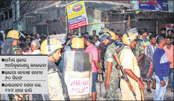 ନୂଆଦିଲ୍ଲୀ, ୧୧ା୪: ରାମନବମୀ ପତାକାକୁ ଅପବିତ୍ର କରାଯିବା ଅଭିଯୋଗକୁ ନେଇ ରବିବାର ଝାଡ଼ଖଣ୍ଡର ଜାମସେଦପୁର ଅନ୍ତର୍ଗତ ଶାସ୍ତ୍ରୀନଗର ଅଞ୍ଚଳରେ ସାମ୍ପ୍ରଦାୟିକ ହିଂସାକାଣ୍ଡ ଘଟିଯାଇଛି। ଦୁଇ ଗୋଷ୍ଠୀର ଲୋକେ ପରସ୍ପରକୁ ଟେକାମାଡ଼ କରିବା ସହ ଅସ୍ଥାୟୀ ଦୋକାନ ଓ କେତେକ ଗାଡ଼ି ଜାଳିଦେଇଥିଲେ। ପୂର୍ବ ସିଂହଭୂମ ପୋଲିସ ସୋମବାର ଏତଲା ଦାଏର କରିଛି। ହିଂସା ମାମଲାରେ ଜଣେ ସ୍ଥାନୀୟ ଭାଜପା ନେତା ଅଭୟ ସିଂଙ୍କ ସମେତ ୬୦ ଜଣଙ୍କୁ ଗିରଫ କରାଯାଇଥିବାବେଳେ ୧,୧୨୦ ଜଣଙ୍କ ନାଁରେ ମାମଲା ରୁଜୁ ହୋଇଛି। ଉକ୍ତ ଅଞ୍ଚଳରେ ଉତ୍ତେଜନା ଲାଗି ରହିଥିବାରୁ ୧୪୪ ଧାରା ଜାରି ହୋଇଛି। ଏଥିସହ ଶାସ୍ତ୍ରୀନଗର ଅଞ୍ଚଳରେ ଇଣ୍ଟରନେଟ ସେବାକୁ ବନ୍ଦ କରିଦିଆଯାଇଛି। ସୋମବାର ସକାଳେ ଓ ସନ୍ଧ୍ୟାରେ ପୋଲିସ ପକ୍ଷରୁ ସେଠାରେ ଫ୍ଲାଗ୍ମାର୍ଚ୍ଚ କରାଯାଇଥିଲା।