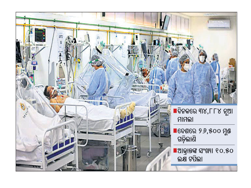 ଗତ ୨୪ ଘଣ୍ଟା ମଧ୍ୟରେ ୩୪,୮୮୪ ନୂଆ ମାମଲା ସାମ୍ନାକୁ ଆସିଥିବାବେଳେ ୬୭୧ ଜୀବନ ଯାଇଛି। ଦେଶରେ ଏଥିସହ ମୋଟ ଆକ୍ରାନ୍ତଙ୍କ ସଂଖ୍ୟା ୧୦.୫୦ ଲକ୍ଷରୁ ଅଧିକ ହୋଇଛି। ମୋଟ ୨୬,୫୦୦ ଲୋକ ପ୍ରାଣ ହରାଇଥିବାବେଳେ ସବୁଆଡ଼େ ଆତଙ୍କ ପରିସ୍ଥିତି ଦେଖାଦେଇଛି। ସ୍ବାସ୍ଥ୍ୟ ମନ୍ତ୍ରଣାଳୟର ରିପୋର୍ଟ ମୁତାବକ ୬.୫୪ ଲକ୍ଷ ଲୋକ ସୁସ୍ଥହୋଇ ଘରକୁ ଫେରିଛନ୍ତି। ଏବେ ଆକ୍ଟଭ୍‌ ମାମଲା ୩.୫୮ ଲକ୍ଷ ରହିଥିବା ଜଣାପଡ଼ିଛି। ବହୁମାତ୍ରାରେ ନୂଆ ମାମଲା ଦେଖାଦେବା ପରେ ସୁସ୍ଥହାର ସାମାନ୍ୟ କମି ୬୨.୯୩% ରହିଛି।