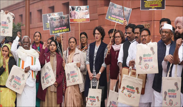 ନୂଆଦିଲ୍ଲୀ,୧୮ା୧୨: ପ୍ରିୟଙ୍କା ଗାନ୍ଧୀ ଭଦ୍ରାଙ୍କ ସମେତ ଅନେକ କଂଗ୍ରେସ ଏମ୍ପି ବାଂଲାଦେଶରେ ଅତ୍ୟାଚାରର ସମ୍ମୁଖୀନ ହୋଇଥିବା ହିନ୍ଦୁ ଓ ଖ୍ରୀଷ୍ଟିଆନ୍ମାନଙ୍କୁ ନ୍ୟାୟ ଦାବିରେ ମଙ୍ଗଳବାର ପାର୍ଲାମେଣ୍ଟ ଭବନ ପରିସରରେ ବିକ୍ଷୋଭ ପ୍ରଦର୍ଶନ କରିଛନ୍ତି। ‘ବାଂଲାଦେଶର ସଂଖ୍ୟାଲଘୁଙ୍କ ସହ ରହିଛୁ’ ଲେଖାଥିବା ହ୍ୟାଣ୍ଡବ୍ୟାଗ୍ ଧରି ସେମାନେ ବିକ୍ଷୋଭ କରିଥିଲେ। ପାଲେଷ୍ଟିନୀୟଙ୍କୁ ସମର୍ଥନ କରି ପ୍ରିୟଙ୍କା ସୋମବାର ପାଲେଷ୍ଟାଇନ୍ ଲେଖାଥିବା ବ୍ୟାଗ୍ ନେଇ ପାର୍ଲାମେଣ୍ଟ ଯାଇଥିବାବେଳେ ମଙ୍ଗଳବାର ବାଂଲାଦେଶ ସଂଖ୍ୟାଲଘୁଙ୍କ ସମର୍ଥନରେ ବ୍ୟାଗ୍ ନେଇଥିଲେ। ବାଂଲାଦେଶରେ ଅସୁବିଧାରେ ପଡ଼ିଥିବା ଲୋକଙ୍କୁ ସରକାର ସମର୍ଥନ ଯୋଗାଇ ଦିଅନ୍ତୁ ଓ ବାଂଲାଦେଶ ଅନ୍ତରୀଣ ସରକାରଙ୍କ ନିକଟରେ ପ୍ରସ୍ତାବ ଉଠାନ୍ତୁ ବୋଲି ସୋମବାର ଶୂନ୍ୟକାଳରେ ପ୍ରିୟଙ୍କା କହିଥିଲେ।