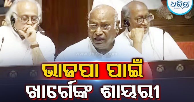 ନୂଆଦିଲ୍ଲୀ,୧।୭: ରାଜ୍ୟ ସଭାରେ ବିରୋଧୀ ଦଳର ନେତା ତଥା କଂଗ୍ରେସ ଅଧ୍ୟକ୍ଷ ମଲ୍ଲିକାର୍ଜୁନ ଖାର୍ଗେ ଗୃହରେ ପ୍ରଧାନମନ୍ତ୍ରୀ ନରେନ୍ଦ୍ର ମୋଦି ଏବଂ ତାଙ୍କ ସରକାର ଉପରେ ଶାୟରୀ କରିଛନ୍ତି। ସେ କହିଛନ୍ତି, କେବେ ଗର୍ବ କର ନାହିଁ, ଭାଗ୍ୟ ବଦଳିଯାଏ। ଦର୍ପଣ ସମାନ ରହିଥାଏ, ପ୍ରତିଛବି ବଦଳିଯାଏ। ପ୍ରଧାନମନ୍ତ୍ରୀ ମୋଦି ଏବଂ ଭାଜପା ଦେଇଥିବା ୪୦୦-ପ୍ଲସ ସ୍ଲୋଗାନକୁ ଖାର୍ଗେ ଦର୍ଶାଇ ଏହି ଶାୟରୀ କହିଛନ୍ତି। ଏଭଳି ସ୍ଲୋଗାନ ଦିଆଯାଇଛି, କିନ୍ତୁ ନିର୍ବାଚନ ଫଳାଫଳ ତାଙ୍କ ସପକ୍ଷରେ ଆସିନାହିଁ।