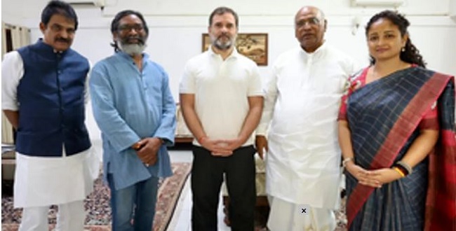 ଦିଲ୍ଲୀରେ ମଲ୍ଲିକାର୍ଜୁନ ଖାର୍ଗେଙ୍କ ବାସଭବନରେ ଜେଏମଏମ ମୁଖ୍ୟ ହେମନ୍ତ ସୋରେନ ଏବଂ କଂଗ୍ରେସ ଏମପି ରାହୁଲ ଗାନ୍ଧୀଙ୍କୁ ଭେଟିଥିଲେ। କୁହାଯାଉଛି ଯେ ଏହି ବୈଠକରେ ତିନି ନେତାଙ୍କ ମଧ୍ୟରେ ଦୀର୍ଘ ସମୟ ଧରି ଆଲୋଚନା ହୋଇଥିଲା।