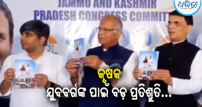 ଶ୍ରୀନଗର,୧୬ା୯: ଜମ୍ମୁ-କଶ୍ମୀର ବିଧାନସଭା ନିର୍ବାଚନ ପାଇଁ କଂଗ୍ରେସ ପକ୍ଷରୁ ସୋମବାର ଦଳୀୟ ଇସ୍ତାହାର ପ୍ରକାଶ ପାଇଛି। ଏଥିରେ କୃଷକ, ମହିଳା ଏବଂ ଯୁବବର୍ଗଙ୍କ ପାଇଁ ଅନେକ ପ୍ରତିଶ୍ରୁତି ଦିଆଯାଇଛି। ‘ହାଥ୍ ବଦଲେଗା ହାଥ୍’ ନାମରେ କଂଗ୍ରେସର ଏହି ନିର୍ବାଚନୀ ଇସ୍ତାହାରରେ ସମସ୍ତ ଫସଲ ପାଇଁ ବୀମା କରାଯିବା ସହ ସେଓ କିଲୋଗ୍ରାମ ପ୍ରତି ସର୍ବନିମ୍ନ ସହାୟକ ମୂଲ୍ୟ (ଏମ୍ଏସ୍ପି) ୭୨ ଟଙ୍କା ଧାର୍ଯ୍ୟ ହେବ ବୋଲି କୁହାଯାଇଛି।